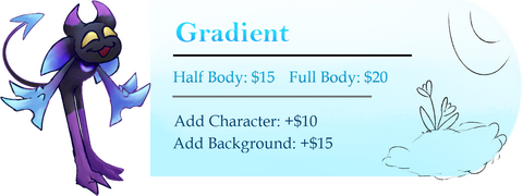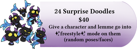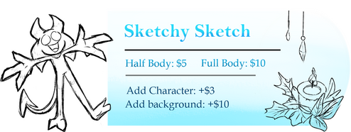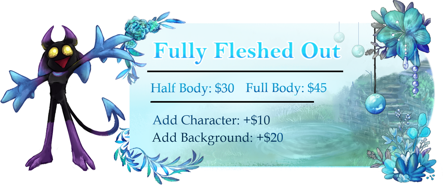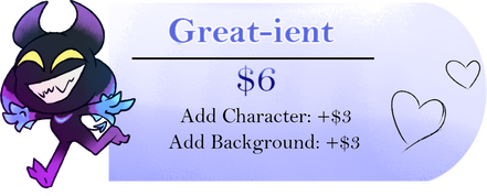 Doesn’t matter if it’s a $3 Sketch or a $60 Fully Fleshed Out commission, it'll count as "1" commission. Pay for a total of 6 commissions and you'll earn a "Little Extra Somethin'" for your next commission!