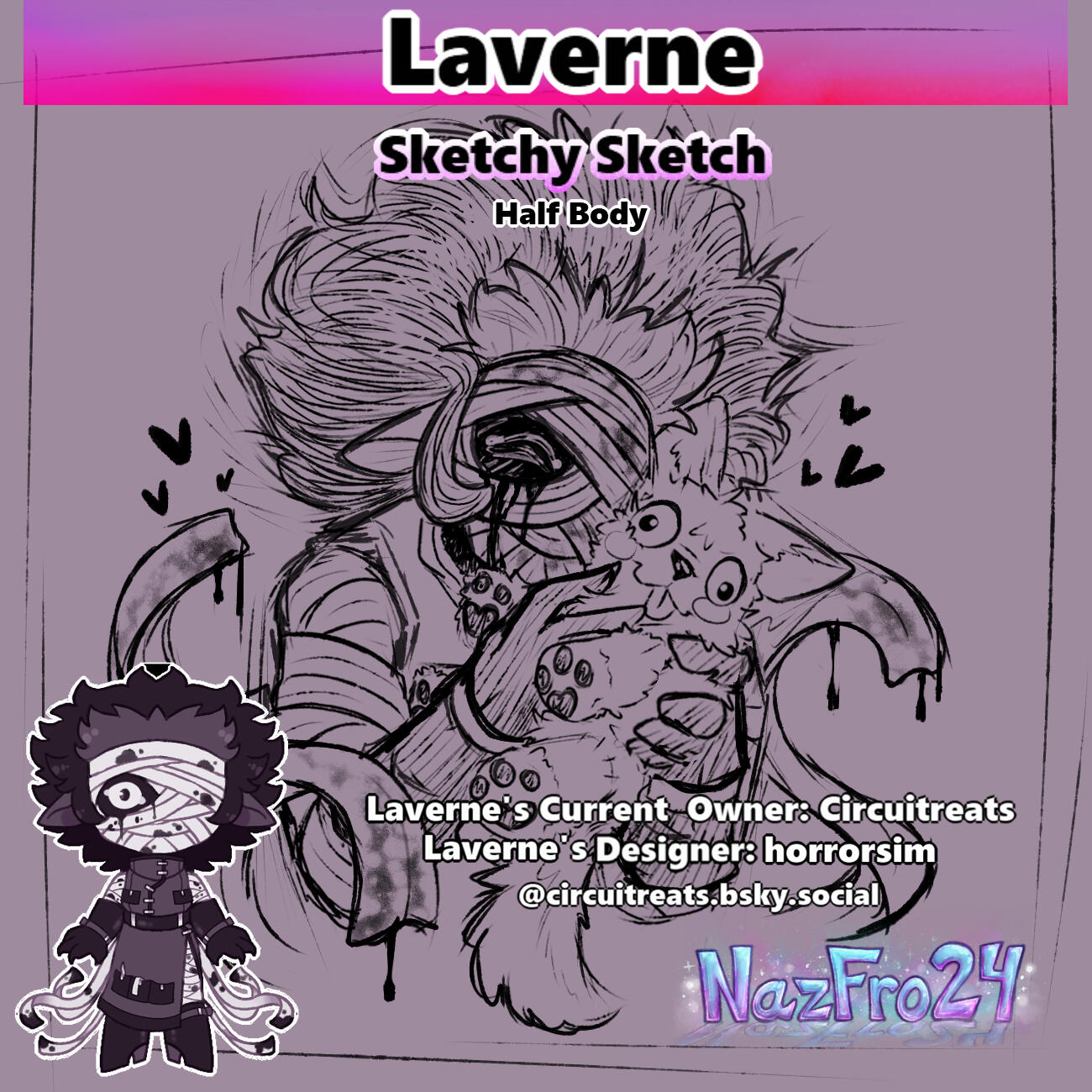 Doesn’t matter if it’s a $3 Sketch or a $60 Fully Fleshed Out commission, it'll count as "1" commission. Pay for a total of 6 commissions and you'll earn a "Little Extra Somethin'" for your next commission!